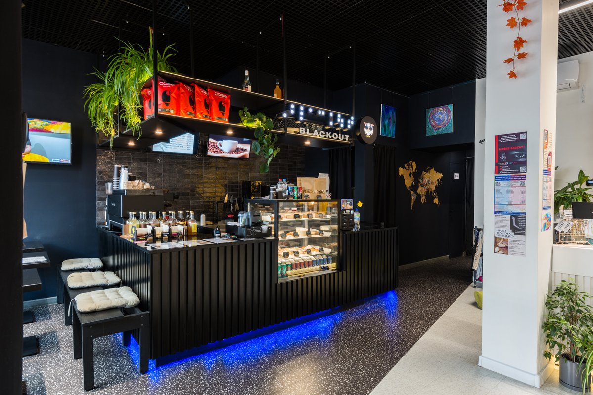 Посещение кофейни BlackOut могу оценить "на отлично"! Я покупал воду в заведении. Сотрудники работают хорошие, обслужили прекрасно, все общались очень вежливо. В самой кофейне в посещениях все чисто, интерьер хороший.