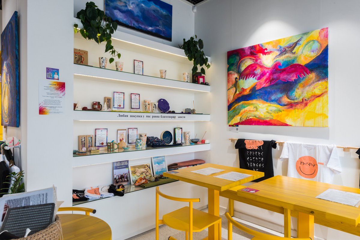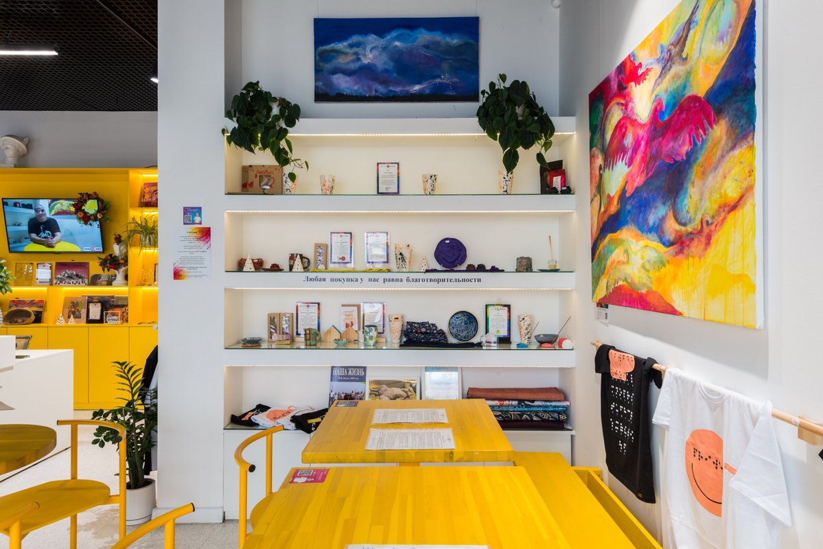Посещали музей в темноте, мне понравилось развитие чувствительности, задумка приводить людей и давать им пробовать активировать свои чувства через отсутствие зрения, это очень важно. От кофейни забавные впечатления, олень стоит прикольный, оформление очень красивое, фотографии, книжки очень понравились.